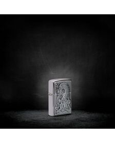 The 2023 Collectible of the Year marks 75 years since the original Zippo car first took to the highways and captivated onlookers across America. This Armor® High Polish Black Collectible depicts the iconic Zippo car using our Photo Image 360° process, which extends the design around all sides of the piece. Laser Two-Tone is used to reveal the Zippo flame and 75th anniversary icon in luxurious brass tones, while the car’s chimney is illuminated by a Fire Opal crystal, chosen specially for Europe, the Middle East and Africa. Finally, the gold-plated insert is engraved with a repeating Zippo motif for the very first time, distinguishing this Collectible from all others before it. Each lighter is consecutively numbered, features a Luxury bottom stamp and comes in special collectible packaging.