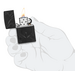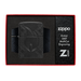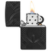 L'icona della fiamma Zippo è circondata da un ricco motivo a rivetti dalla texture profonda su questo accendino Armor® Black Matte, in un lussuoso design MultiCut che si estende su tutti i lati del pezzo.